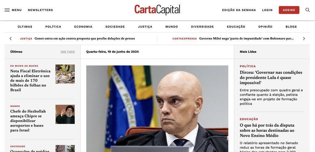 Carta Capital is the digital arm of the magazine of the same name, providing information on politics and the economy in Brazil.