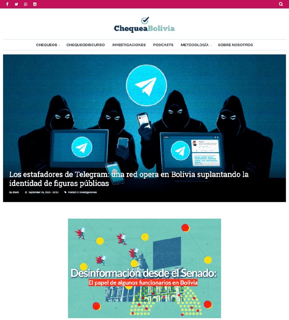 ChequeaBolivia is an initiative of the Center for Studies of Economic and Social Reality (CERES), which began its activities on June 1, 2019 with the publication of its first verification. Its main mission is to combat disinformation and contribute to the strengthening of the democratic system in Bolivia, an objective that has become more relevant in the current context, where social networks and digital platforms have significantly increased the circulation of false or misleading content. Over the years, ChequeaBolivia has established itself as a reference in fact verification, standing out for its commitment to transparency and information rigor. Their work is not only limited to fact-checking; It has also become a key actor in media literacy, promoting citizens' critical capacity to analyze the information they consume. In addition, it has delved into research into the information ecosystem, exposing how disinformation operates and what its impacts are on society. Through social media campaigns and educational activities, ChequeaBolivia works to raise citizen awareness and foster an informed and responsible culture. Recently, ChequeaBolivia won second place in the prestigious Javier Valdez Latin American Investigative Journalism Award, awarded by the Institute for Prensa y Sociedad (IPYS). This recognition was for the investigation "Nicotine networks: new products, old tactics", a collaborative project carried out together with Salud con Lupa from Peru, Colombiacheck from Colombia, the Latin American Center for Journalistic Investigation (CLIP), The Examination and Agencia Pública. This work stood out for its rigorous analysis and for revealing the strategies of the large tobacco industries in the region. In a context of economic crisis and political challenges in Bolivia, ChequeaBolivia has demonstrated adaptability, strengthening strategic alliances and expanding its reach at the national level. With a growing digital community and an innovative approach, the initiative continues to make a difference in the fight against disinformation and strengthening democracy in Bolivia and beyond.