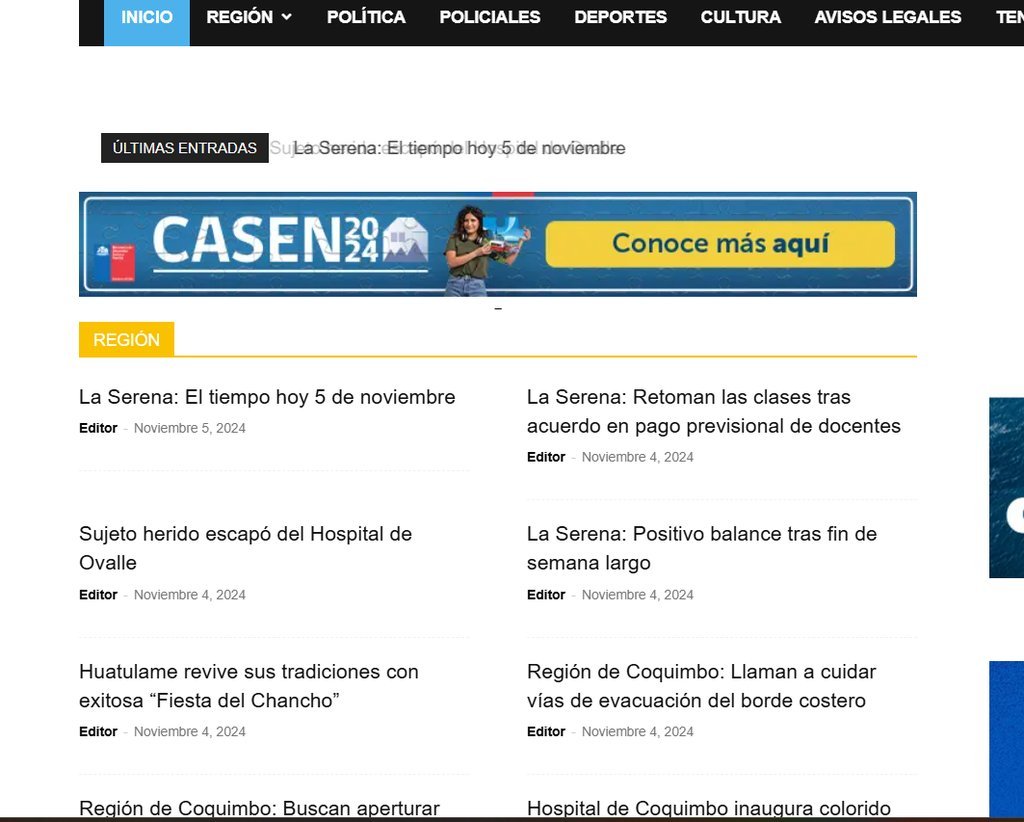 La Serena Online is an independent online news newspaper that was created as a result of the need to find news about the Coquimbo Region in a truthful and reliable manner, not only covering serious aspects, but also news that does not have sufficient coverage for the community. That is why this digital newspaper seeks to integrate regional society so that they feel identified with them.