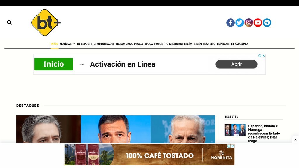 BT + is a multi-platform news outlet dedicated to the Belém do Pará region. It seeks to go beyond the portal, delivering real-time news connected to the audience's experience of each platform, offering complete information. As well as local news, it is dedicated to entertainment and sports.