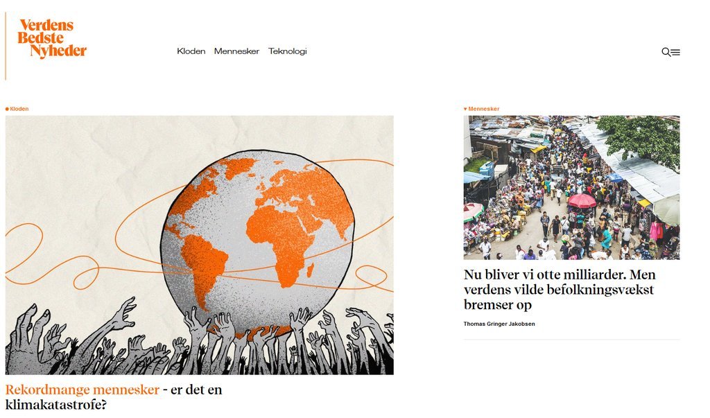 Verdens Bedste Nyheder (in English: The Best News In the World) was founded in 2010 as part of a campaign created by the United Nations, Danida, and the organisation Globalt Fokus. Its mission is to spread information about global progress on the United Nations’ 17 Sustainable Development Goals. Since 2016, Verdens Bedste Nyheder has become an independent publication. As a non-profit, its revenue comes from government grants, paid memberships, and other funds. All its content is free.